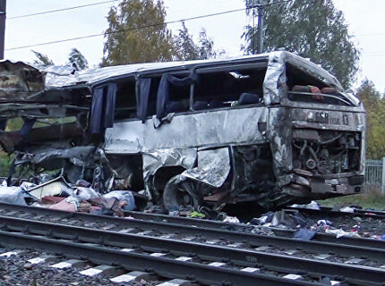 Появились первые фото с места столкновения автобуса и поезда под Владимиром