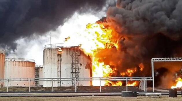 Губернатор Гладков: пожар на нефтебазе произошел из-за удара двух вертолетов ВС Украины