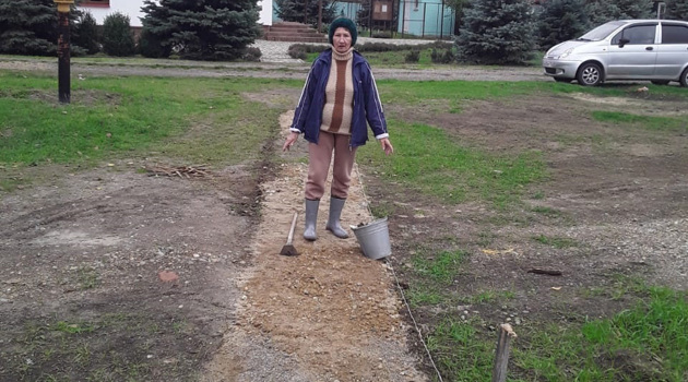 Жительница Заречного отсыпала тропинку от сквера до храма