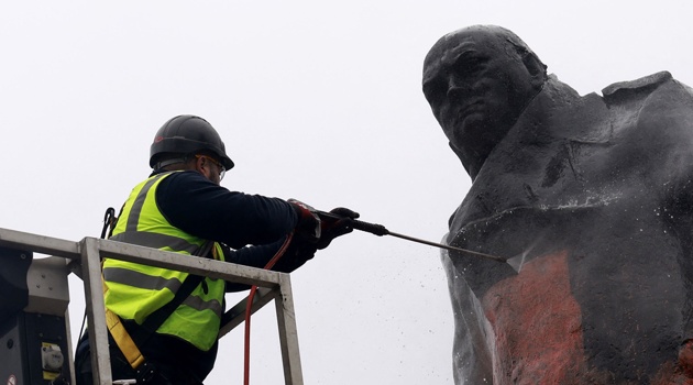 Статую Черчилля в Вестминстере осквернили надписями красной краской