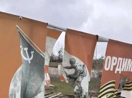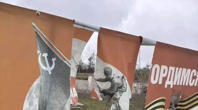 Вандалы изрезали баннеры ко Дню Победы в российском городе