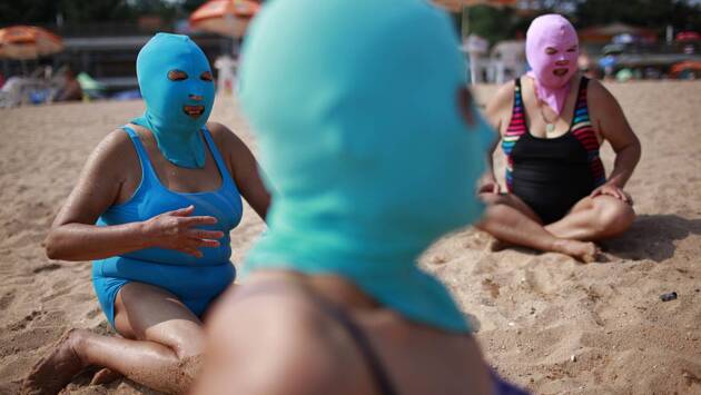 Россиянка пояснила, что такой пляжный аксессуар называется фейскини. Его придумали почти 20 лет назад для того, чтобы уберечь кожу лица от солнца.