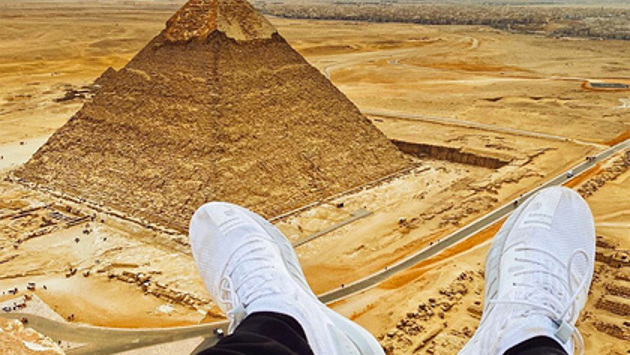 Здоровецкий опубликовал снимок, на котором видны только ноги на вершине пирамиды.