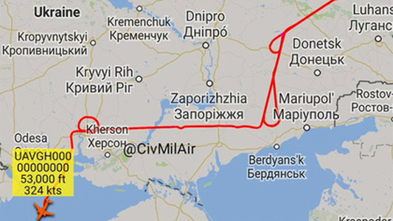 Первоначально самолет совершал полет в международном воздушном пространстве к югу от Одессы и западу от Евпатории, затем сделал несколько кругов в зоне к западу от Севастополя, после чего пролетел по направлению к Новороссийску и вернулся обратно.