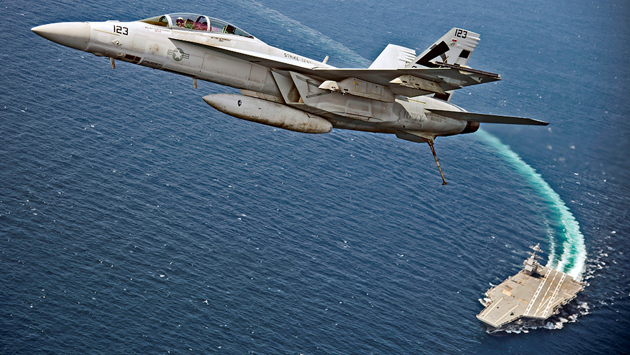 У F-18 отвалился при взлете с авианосца топливный бак