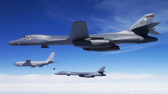 «Экипажи российских истребителей идентифицировали воздушные цели как два сверхзвуковых стратегических бомбардировщика В-1В ВВС США в сопровождении двух самолетов-заправщиков KC-135 и сопроводили их над акваторией Черного моря», — приводится в публикации заявление НЦУО.