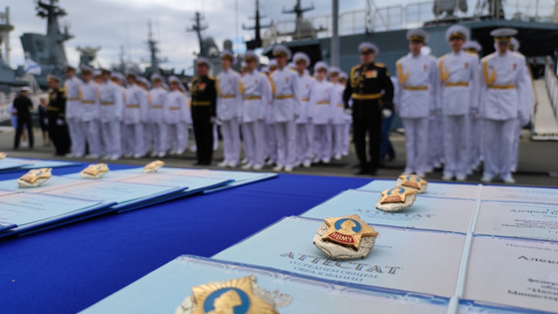 Выпускникам-отличникам красные дипломы вручил командующий Тихоокеанским флотом адмирал Сергей Авакянц и губернатор Приморского края Олег Кожемяко.