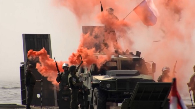 На фарватере Оки начинается парад инженерных войск. Под звуки оркестра открывается один из самых зрелищных конкурсов Армейских игр - «Открытая вода».