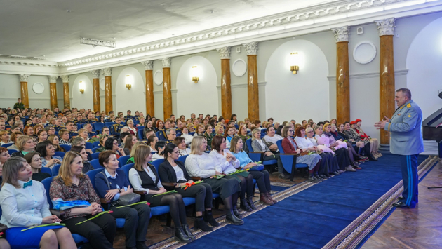 Начальник академии генерал-майор Анатолий Нестечук поздравил женский коллектив вуза, а также передал им поздравление от командующего Космическими войсками генерал-полковника Александра Головко.