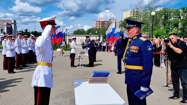 Торжественное вручение аттестатов и прощание со знаменем прошло на плацу перед главным учебным корпусом. На мероприятии присутствовали родные и близкие воспитанников. Выпускников поздравили заместитель главнокомандующего Воздушно-космическими силами по военно-политической работе Игорь Романов, генеральный директор госкорпорации «Роскосмос», выпускник Калининского суворовского военного училища Юрий Борисов.