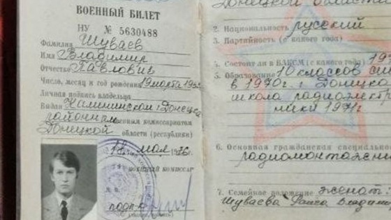 Но самый интересный артефакт оказался в кармане у Владимира Шуваева - военный билет, выданный в Советском Союзе. Оно и понятно - на момент смерти Владимиру Ивановичу исполнилось 66 лет.