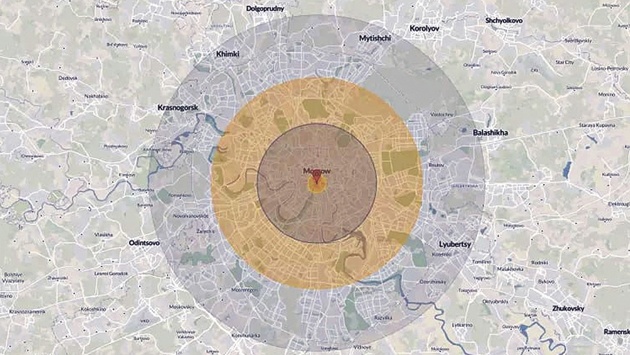 А зря, ведь сидящая в Лондоне автор указанной статьи Newsweek ссылается на данные онлайн-сервиса, который так и называется Nukemap (в переводе на русский - "Ядерная карта"). Этот сайт дает возможность пользователям шутки ради поставить точку на карте мира, выбрать мощность боеголовки для ядерного удара и тут же получить наглядную картину жертв и разрушений. Кликнул мышкой - по карте иностранного мегаполиса расходятся круги ударных волн виртуального термоядерного взрыва. Любопытная забава, косвенно свидетельствующая о стремительном понижении психологического барьера западной аудитории по отношению к практической реализации подобного катастрофического сценария.