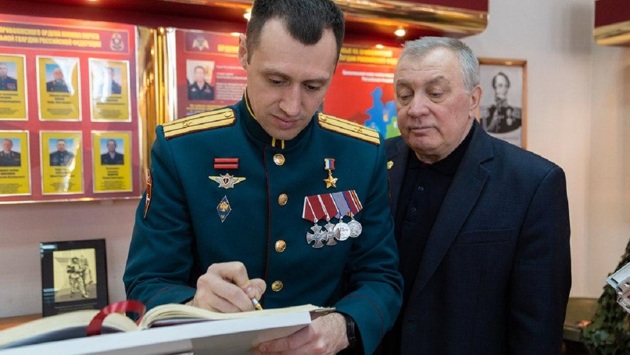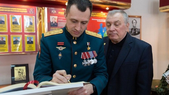 В Нижнем Новгороде состоялась встреча командующего Приволжским округом войск Национальной гвардии генерал-полковника Сергея Просяника с Героем России майором Андреем Филоненко. 23 февраля офицер казанского отряда специального назначения получил Золотую Звезду Героя России. Как сообщили в управлении ведомства, высокой награды росгвардеец удостоен за мужество и героизм, проявленные при выполнении служебно-боевых задач специальной военной операции и за оборону Курской области в первые дни попытки вторжения украинских боевиков. В ходе общения генерал-полковник Сергей Просяник поздравил росгвардейца с наградой, поблагодарил его за службу и пожелал успехов.В Нижнем Новгороде Андрей Филоненко почтил память павших товарищей у мемориала «Военнослужащим и сотрудникам Приволжского ордена Жукова округа войск национальной гвардии Российской Федерации, погибшим при исполнении воинского и служебного долга». Кроме того, в музее при управлении округа он провел встречу со школьниками учебных заведений Нижегородской области. Андрей Филоненко призвал юных нижегородцев учиться и развиваться, поскольку в основе сильного и независимого государства лежит работа профессионалов в каждой сфере. «Задача каждого гражданина – защищать своё Отечество. Это наша страна, и нам ее развивать и защищать в будущем», – подчеркнул Герой России майор Андрей Филоненко.