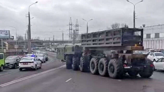 На улицах Белоруссии заметили самоходное колесное шасси для неизвестного ракетного комплекса. Кадры с разработкой опубликовал Центр анализа стратегий и технологий (АСТ) в своем Telegram-канале.