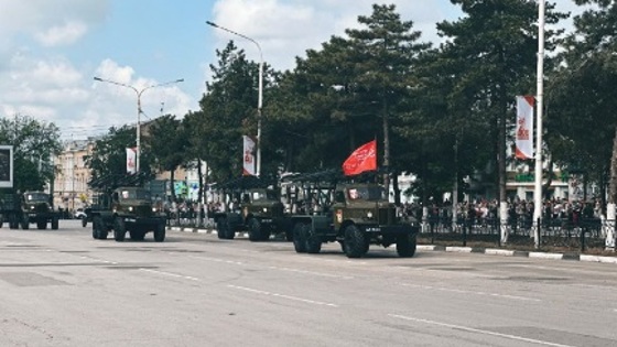 Ростовская область, 9 мая 2025. DON24.RU. В Новочеркасске прошел парад войск Новочеркасского военного гарнизона, посвященный 80-летию победы в Великой Отечественной войне, информирует мэрия. Парад принимал временно исполняющий обязанности командующего 8-й общевойсковой армией ЮВО Руслан Горячкин, командовал парадом командир 133-й бригады управления 8-й армии Сергей Савенков. Историческую часть парада открывали знаменные группы с боевыми знаменами корпусов дивизии 8-й общевойсковой армии, боевыми знаменами 150-й стрелковой дивизии и полков, входящих в ее состав. На площади прошли знаменные группы со штандартами Юго-Западного, 3-го Украинского и 1-го Белорусского фронтов. Торжественным маршем прошли военнослужащие150-й гвардейской мотострелковой Идрицко-Берлинской ордена Кутузова дивизии, одетые в форму времен Великой Отечественной войны и парадный расчет 133-й бригады. Военные и техника прошли по пр. Платовскому. После советских образцов техники проследовали танки Т-90М «Прорыв» и Т-72Б3, бронетранспортеры, боевые машины пехоты. Также можно было увидеть буксируемые гаубицы Д-30, радиорелейные станции, бронеавтомобили. Посмотреть на торжества пришли сотни новочеркасцев. Зрителями стали и ветераны Великой Отечественной войны, ветераны боевых действий.