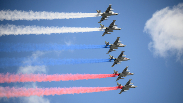 Как рассказали «МК» специалисты по компьютерной графике, видео с пролетом самолетов пилотажных групп «Русские витязи» и «Стрижи», а также с шестеркой штурмовиков Су-25 - это компьютерная графика.