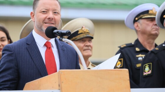 "В этот день мне особенно приятно быть здесь, в Нахимовском военно-морском училище, где воспитываются будущие защитники Отечества — те, кто будет стоять на страже мира и безопасности нашей Родины. Вы — наследники великих традиций русского военно-морского флота, тех, кто во все времена храбро сражался за Родину, кто не щадил себя ради своей страны", — обратился к кадетам спикер ЗС ПК Антон Волошко.