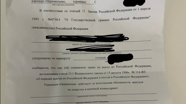 Туриста, «не заметившего» электронную повестку от военкомата, развернули в аэропорту