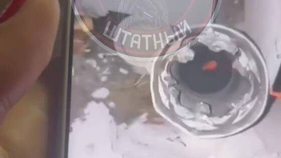 На записи видно корпус ракеты, застрявший в перекрытиях. Автор ролика говорит, что заряд не взорвался. В противном случае были бы жертвы, утверждает женский голос за кадром.