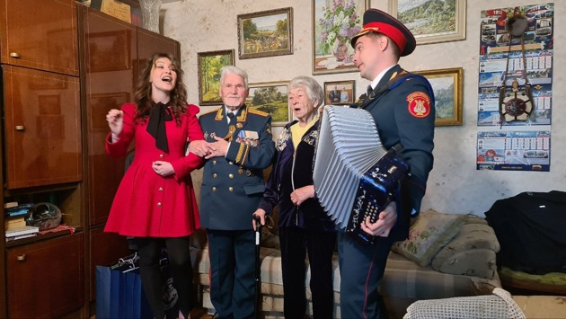 Артисты Академического ансамбля песни и пляски Российской Армии имени А.В. Александрова исполнили концерт с любимыми песнями юбиляра.
