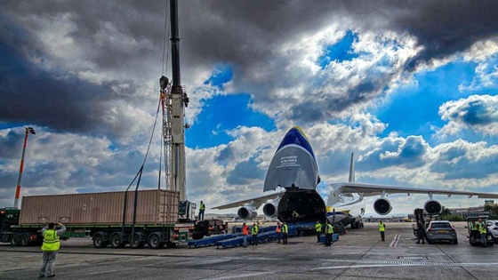 Принадлежащий Украине тяжелый транспортный самолет Ан-124 "Руслан" замечен в израильском аэропорту имени Бен-Гуриона (Тель-Авив). Фотографии появились в социальных сетях. Как отмечает Telegram-канал "Осведомитель", на крылатую машину погрузили большой контейнер, после чего борт был отправлен в Лейпциг.