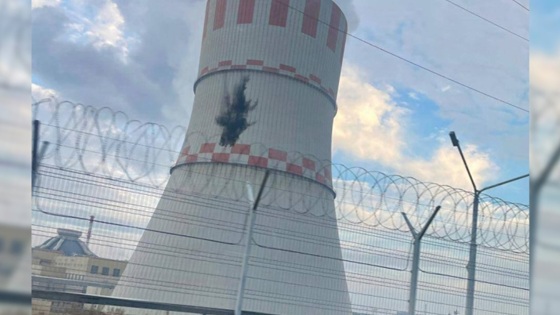 На снимке, распространенном официальным представителем МИД России Родионом Мирошником, хорошо заметен характерный почерневший участок на бетонной поверхности градирни шестого энергоблока. Воздушная цель была своевременно обезврежена системами защиты, однако при падении летательный аппарат взорвался, оставив видимые следы на конструкции.