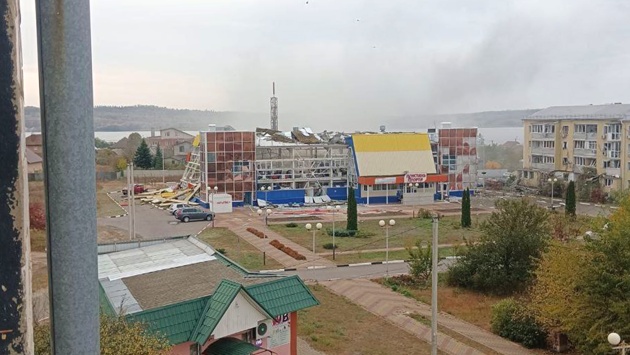 На опубликованных фото и видео можно увидеть здание, которое получило сильные повреждения. В нем частично разрушены несущие конструкции, выбиты окна, повреждена крыша.