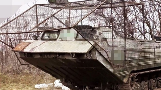 Впервые замечен плавающий транспортер ПТС-2 с "мангалом" и системами РЭБ
