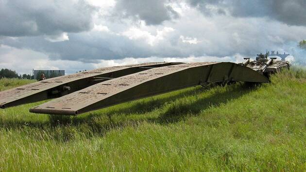 «В России разработан наземный робототехнический комплекс для преодоления траншей, рвов и других подобных препятствий. Дистанционно управляемый аппарат несет конструкцию, которую перекидывает через преграду, обеспечивая движение легкой техники», — говорится в материале.