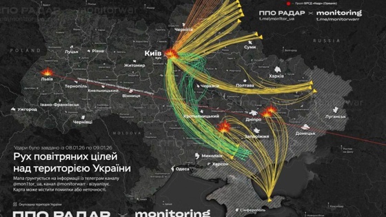 Мониторинговые ресурсы составили схему ударов ВС РФ по объектам критической инфраструктуры Украины в ночь на 9 января.