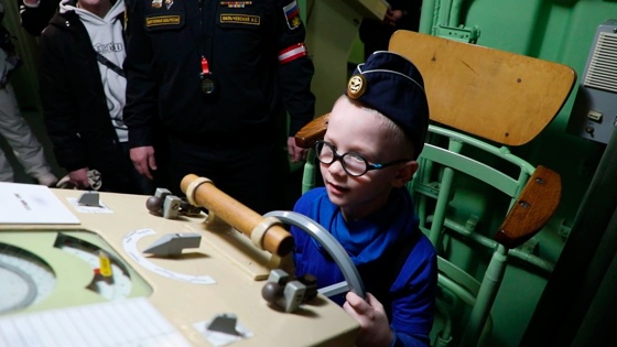 Мальчик примерил спасательный гидрокостюм, а на ходовом посту ему показали органы управления кораблем и средства связи.