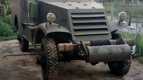 "Разведывательная машина M3 (Scout Car M3) — легкий многоцелевой бронетранспортер США периода Второй мировой войны. Скаут М3. Полный привод на ходу, доки, броня", -- говорится в объявлении.