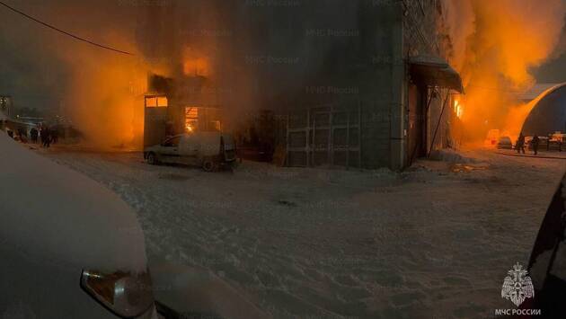 Мощный пожар охватил производственные помещения с людьми внутри в Одинцово