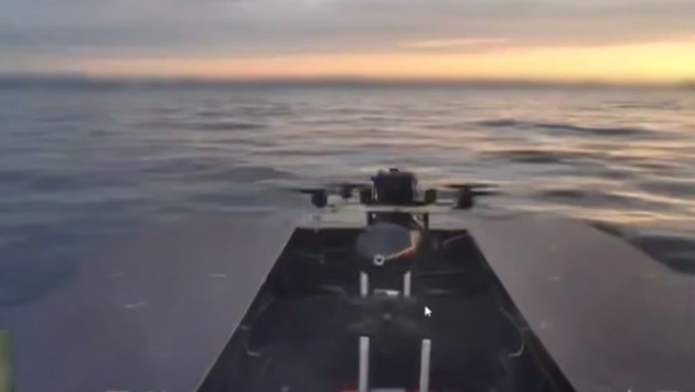Можно увидеть, как оператор выпускает из отсека в носовой части БПЛА. Тот обнаруживает другой БЭК-мишень и поражает его. Можно заметить, что в пути катер сопровождали дельфины. "При съемках ролика ни один морской житель не пострадал", - написал Чадаев.