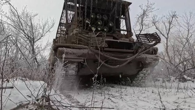 Судя по появившимся в конце 2025 года снимкам боевой работы "Драконов", заводскую защиту от БПЛА на фронте усилили проверенными резинотканевыми экранами и цепями. Также в публикациях о ТОС-3 упоминаются штатные средства РЭБ, но на фото их не видно.