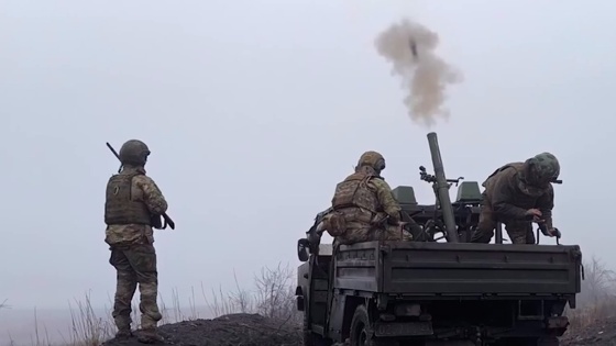 «Кочующий» миномет 177-го полка морской пехоты группировки «Центр» бьет на расстояние до пяти километров. Артиллеристы расчищают путь нашей пехоте. Дроны-разведчики фиксируют попадания. Одна за другой летят мины калибром 82 миллиметра. Мина с виду маленькая, но разлет осколков большой - 150 метров.
