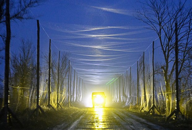 Защитные сети, натянутые над дорогой для противодействия беспилотникам, спасают не везде. Где-то они разорваны шрапнелью, а где-то прямо над проезжей частью повисли на тонких нитях «сбросы» — все еще взведенные. И разминировать их никто не спешит.