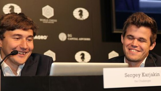 Сергей Карякин не повторил судьбу Бориса Гельфанда, а Магнус Карлсен пришел на пресс-конференцию, но предпочел не обсуждать подробно перипетии неудачной для себя восьмой игры. Подробности девятой партии матча за звание чемпиона мира по шахматам — в отчете «Газеты.Ru» из Нью-Йорка. Ситуация перед девятой партией заставила любителей шахмат вспомнить не столь уж давний матч за корону 2012 года, проходивший в Москве в Третьяковской галерее. Тогда после серии стартовых ничьих, в том числе довольно коротких, претендент Борис Гельфанд уверенно выиграл седьмую партию у чемпиона мира Виши Ананда. Цель, к которой израильтянин стремился не одно десятилетие, казалась такой близкой, но увы: он не справился с волнением, грубо ошибся в следующей партии, и счет сравнялся. Удастся ли Сергею Карякину, только-только захватившему лидерство, избежать ошибок старшего товарища? Сам Борис Гельфанд в интервью «СЭ» отметил существенную разницу между двумя этими матчами: «Огромное значение имеет тот факт, что у Сергея впереди день отдыха, которого в свое время не было у меня, — отметил гроссмейстер. — Очень важно пережить победу, осмыслить ее. У претендента, особенно если он впервые играет матч такого уровня, после победы очень много эмоций. Наверное, я не смог на сто процентов оставить их за скобками своей следующей партии. Но у Карякина есть для этого полтора дня и очень хорошая команда, которая должна ему помочь. Я хочу предостеречь их всех от того, чтобы уже считать матч выигранным. Все только начинается, Карлсен будет играть с удвоенной силой, и Сергею надо быть к этому готовым. Хотя уверен, он сам это прекрасно понимает». Течение девятой партии показало, что Карякин далек от эйфории. Он играл предельно собранно, с большим напором и поставил перед чемпионом серьезные проблемы. Но и Карлсен, похоже, преодолел кризис: в трудной ситуации он проявил свои лучшие качества и спас пол-очка. …Итак, в среду, 23 ноября, после очередного дня отдыха матч продолжился; белые фигуры были у претендента. Как мы помним, в седьмой партии он испробовал ход 1.d4, но ничего не получил по дебюту. На сей раз он вернулся к своему любимому ходу 1.е2-е4, причем сделал его собственноручно: почетных гостей для церемонии первого хода в этот день не оказалось. Карлсен остался верен испанской партии, но все же первым свернул в сторону: раньше он стремился к системе Маршалла, а теперь избрал архангельский вариант. Хотя у этой дебютной линии еще нет устоявшегося, «исторического» названия: ее называют еще новоархангельским вариантом или же системой Юртаева, в честь известного гроссмейстера и теоретика из Киргизии Леонида Юртаева (1959–2011). Когда эта система только появилась на практике, она считалась очень острой и приносила черным отличные дивиденды; но в наши дни она уже очень глубоко изучена. Неудивительно, что соперники достаточно быстро сделали первые 20 ходов; потом Карлсен применил новинку, но из разряда лежащих на поверхности, поэтому едва ли удивил этим продолжением Карякина. На доске возникла типичная для этого варианта позиция с лишней пешкой и двумя слонами, но разрушенной пешечной структурой у белых; шансы черных на ничью оценивались очень высоко. Но это была именно борьба за ничью: шансов на перехват инициативы у чемпиона мира практически не было, тогда как претендент практически в 