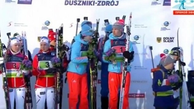 Украинские биатлонисты и российский гимн