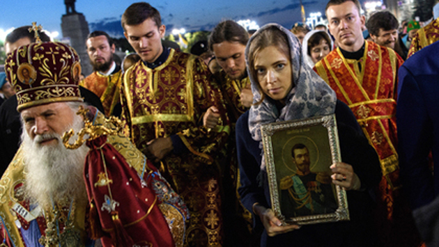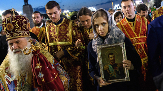 В ночь на 17 июля Наталья Поклонская прошла в колонне традиционного крестного хода в Екатеринбурге: от Храма-на-Крови, построенного на месте убийства последнего российского императора Николая II и его семьи, до монастыря Святых Царственных Страстотерпцев. В руках она держала икону Николая, как и во время прошлогоднего шествия в память о расстрелянной царской семье и акции «Бессмертный полк» в Симферополе. Двадцать два километра бывший крымский прокурор честно преодолела пешком, пишет Znak.com. Народную избранницу, по данным издания, сопровождали митрополит Среднеазиатский Викентий, митрополит Екатеринбургский и Верхотурский Кирилл, а также неизвестный мужчина в деловом костюме, украдкой передававший ей шоколад.