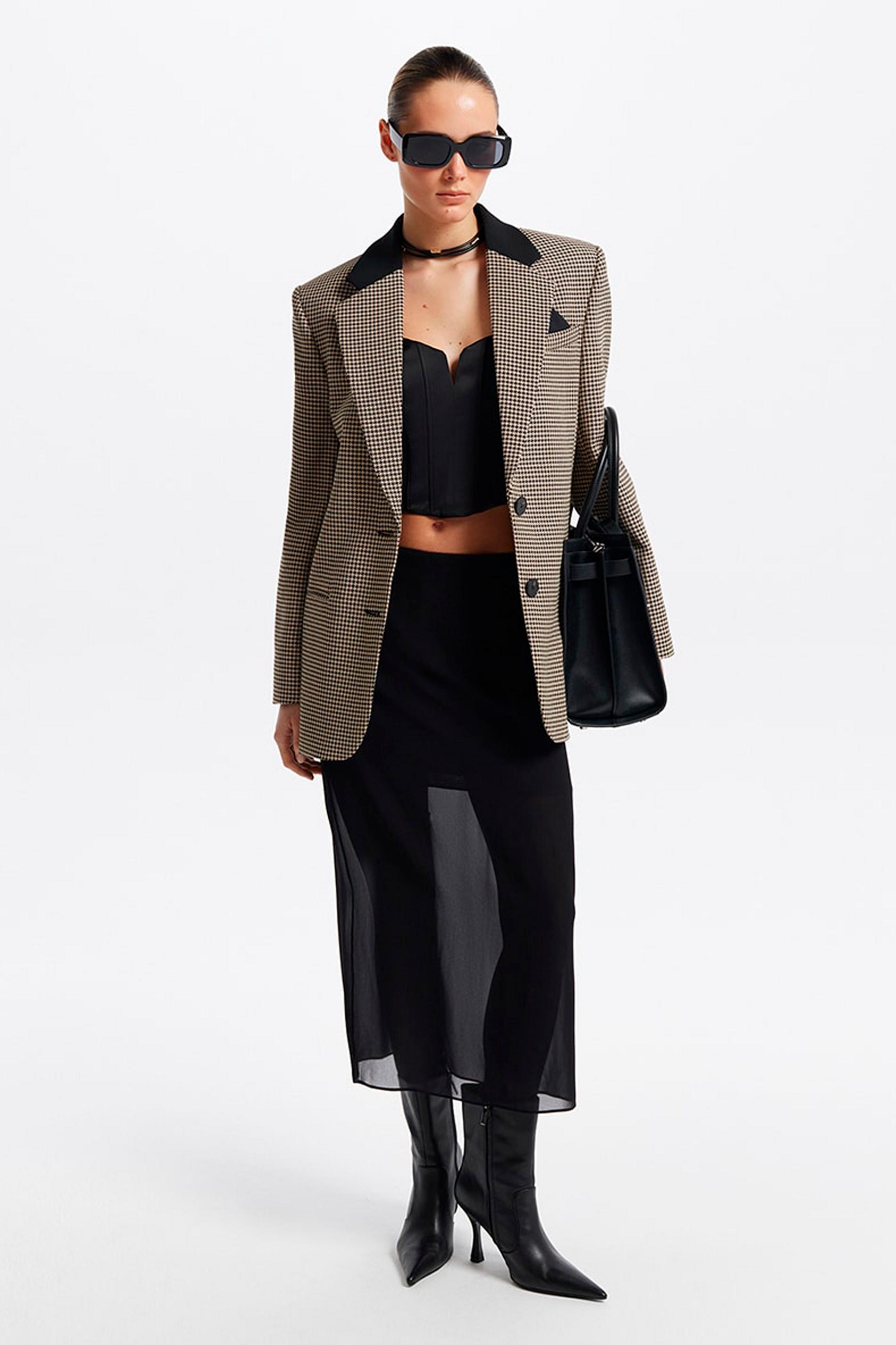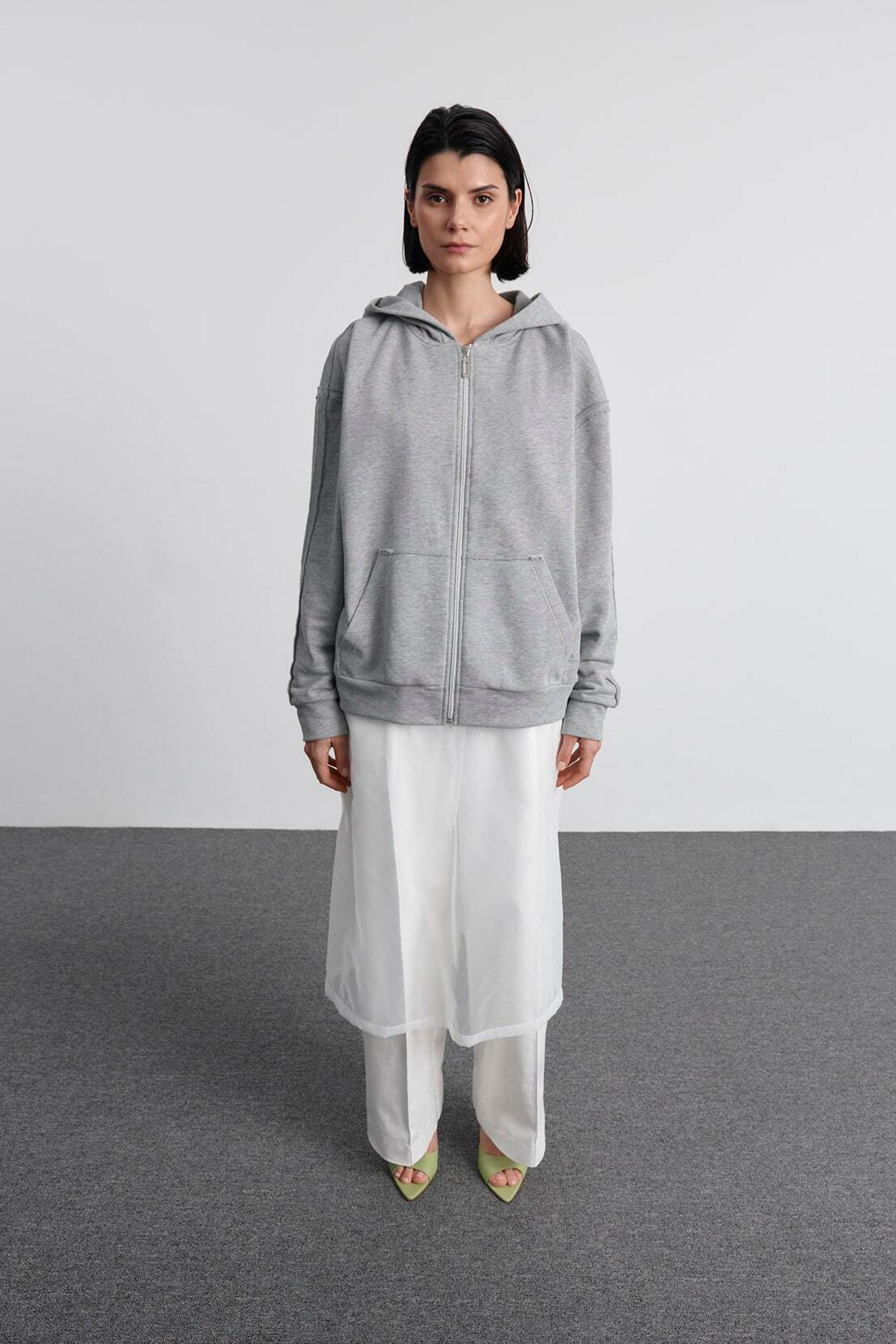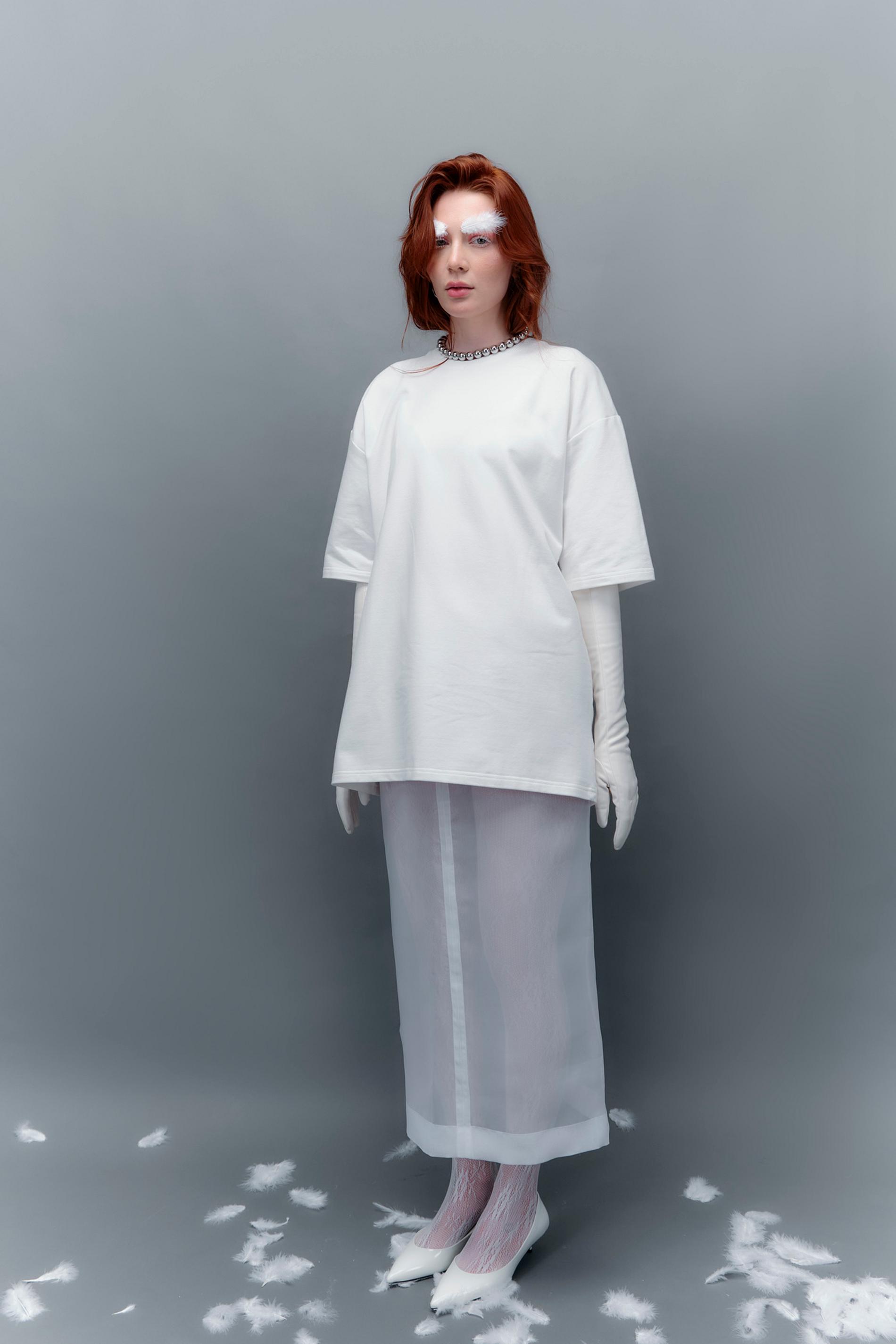 Никто не запрещает вам подобрать к такой юбке аналогичный полупрозрачный верх, но рекомендуем присмотреться к плечевым изделиям из более плотных материалов и сыграть на контрасте тканей. Это может быть оверсайз-пиджак или укороченный жакет, под которые можно надеть майку или кроп-топ. Свитшот в актуальном спортивном стиле и романтичный кардиган из легкой пряжи тоже составят подходящую пару нашей героине.