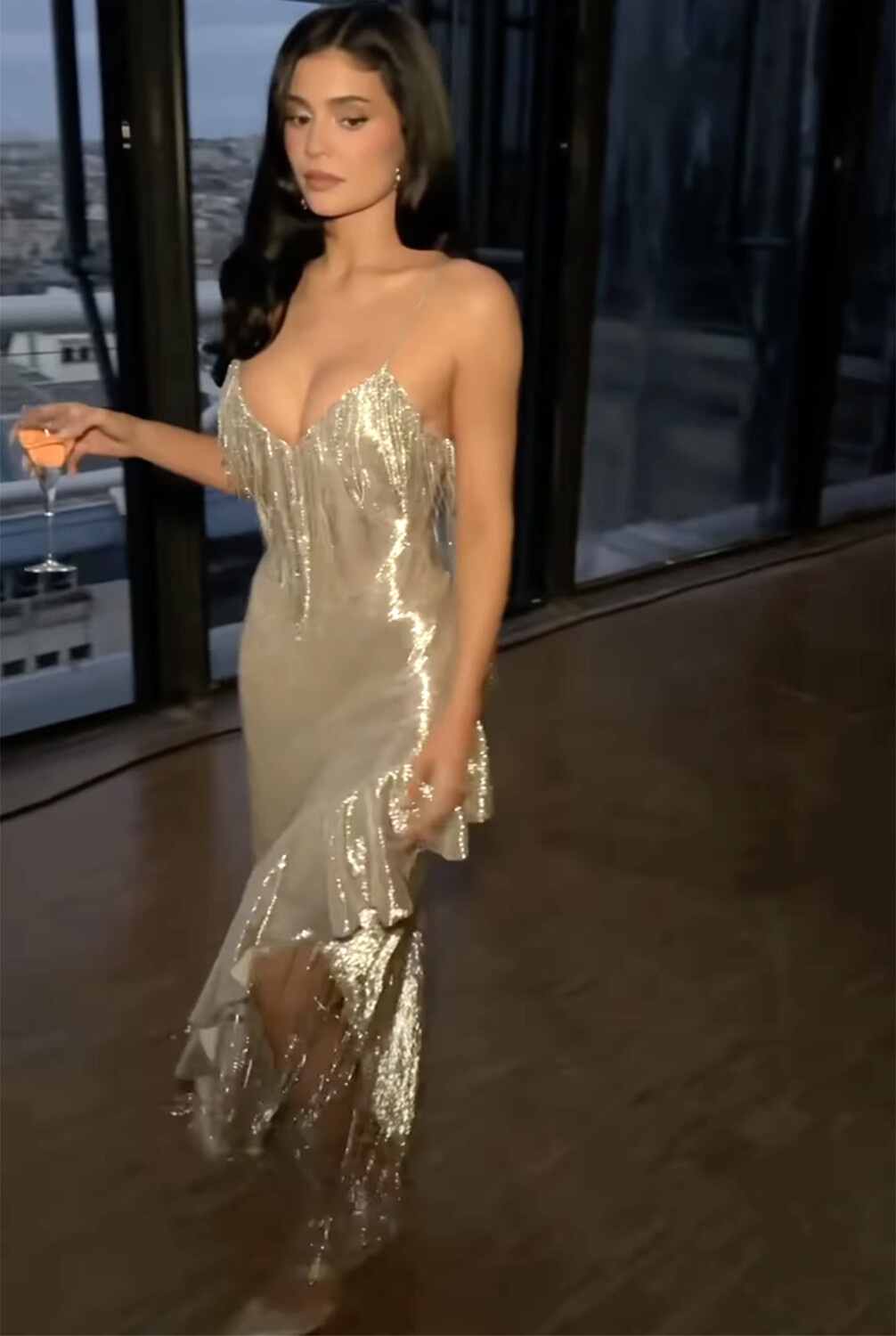 Бизнесвумен Кайли Дженнер в серебряном платье снялась в Париже
