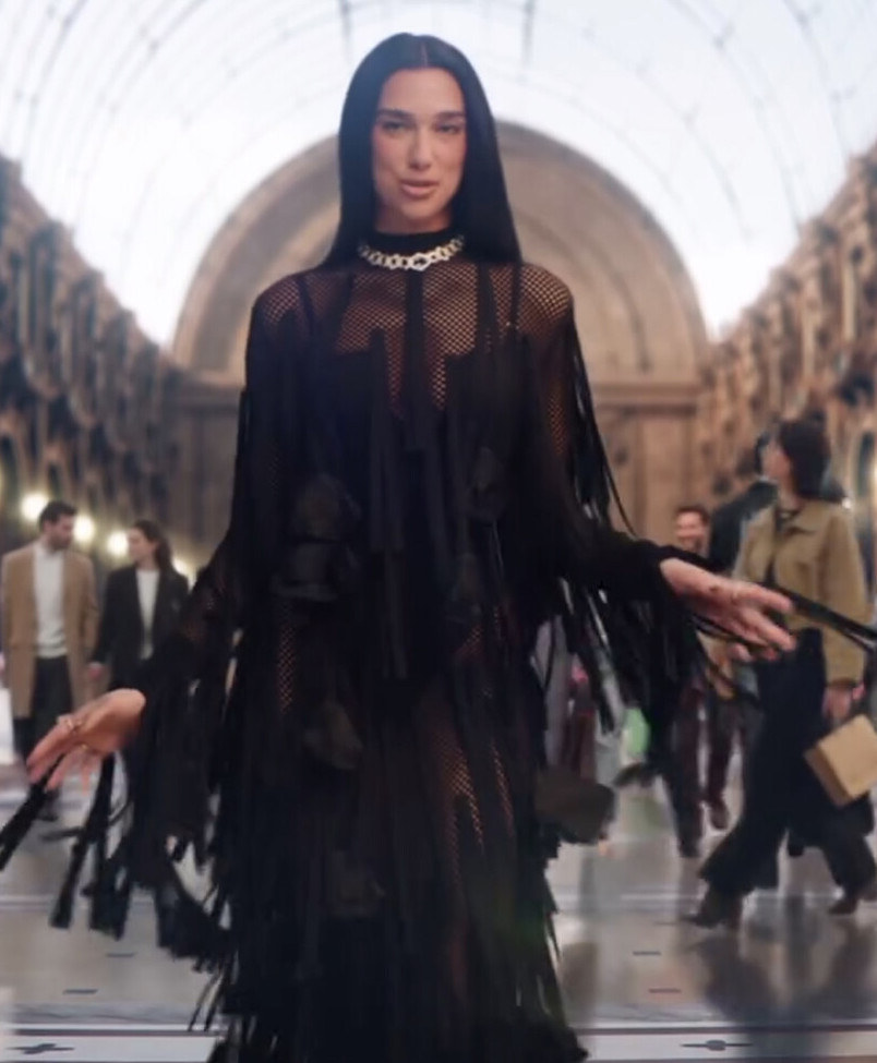 Дуа Липа в черном «голом» платье с сеткой прогулялась по Милану. Волосы певица уложила мягкими прядями и сделала легкий макияж.