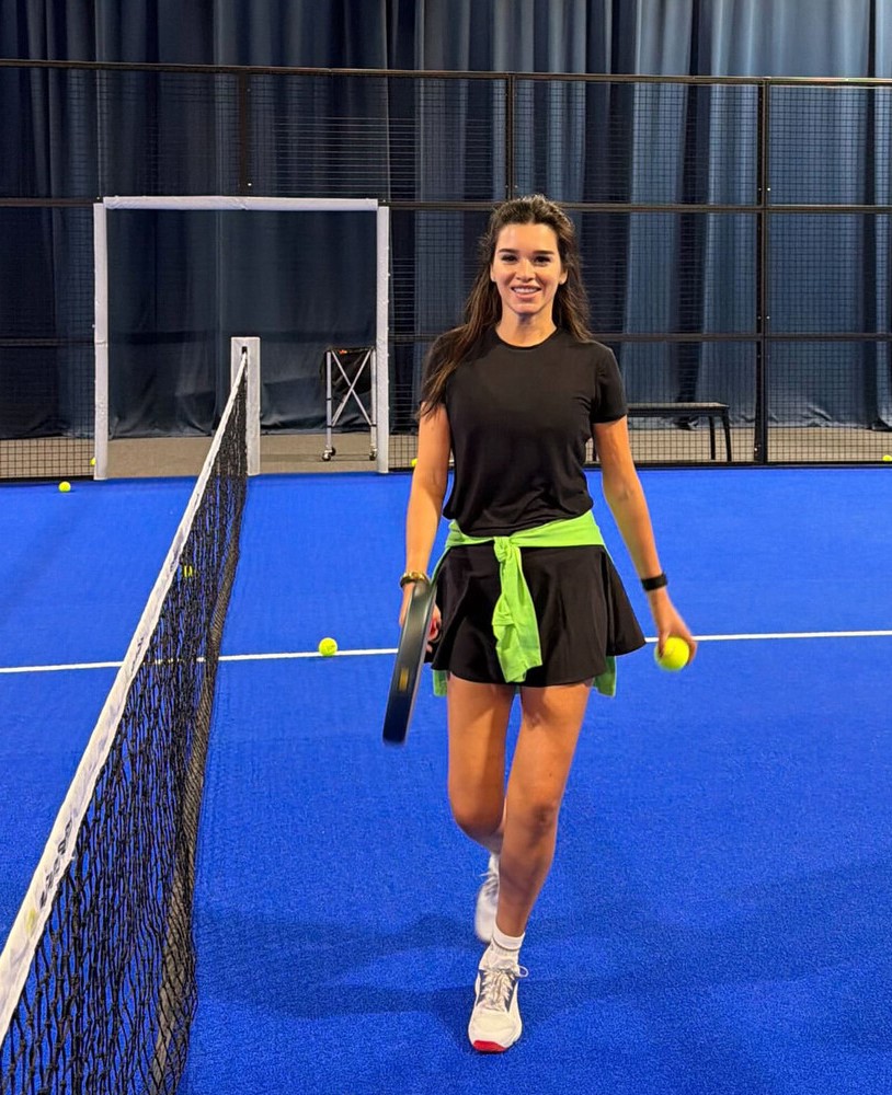 Телеведущая Ксения Бородина в теннисной юбке и футболке сыграла в паддл