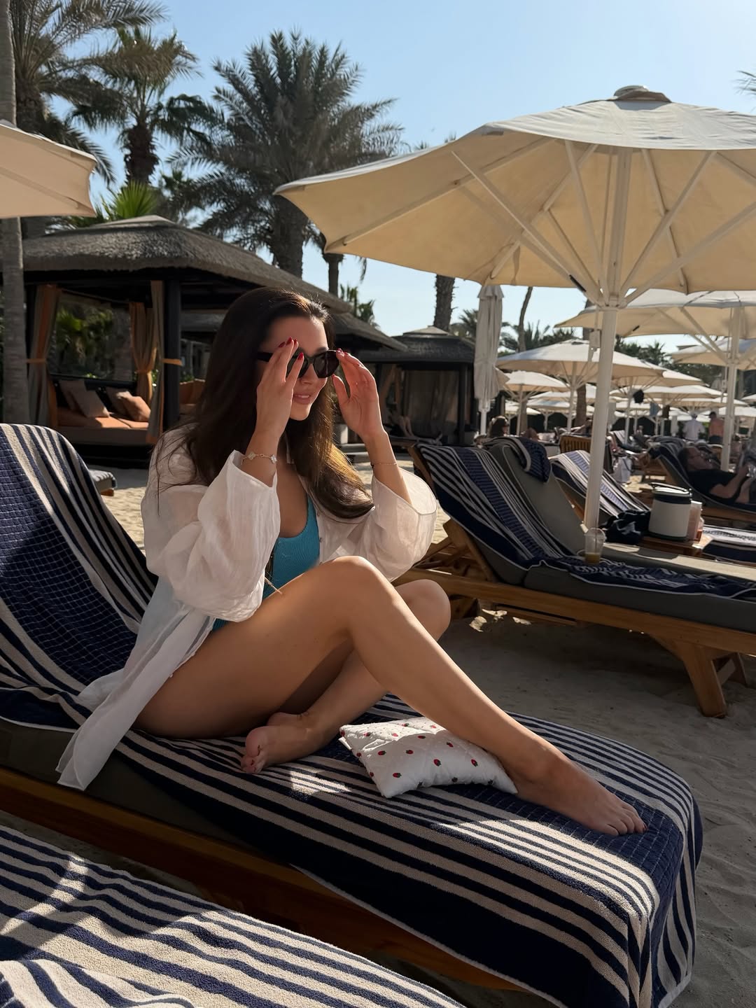 Модель Анна Заворотнюк снялась в купальнике через восемь месяцев после родов. Она позировала в голубом монокини на пляже, дополнив образ белой рубашкой, и опубликовала фото в Instagram (владелец компания Meta признана в России экстремистской и запрещена).