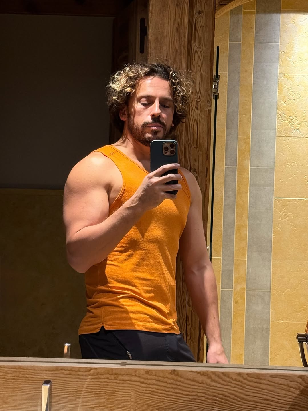 49-летний Максим Галкин продемонстрировал мышцы, стоя в оранжевой майке и черных штанах перед зеркалом. Юморист был запечатлен во время отдыха с семьей на горнолыжном курорте во Франции.