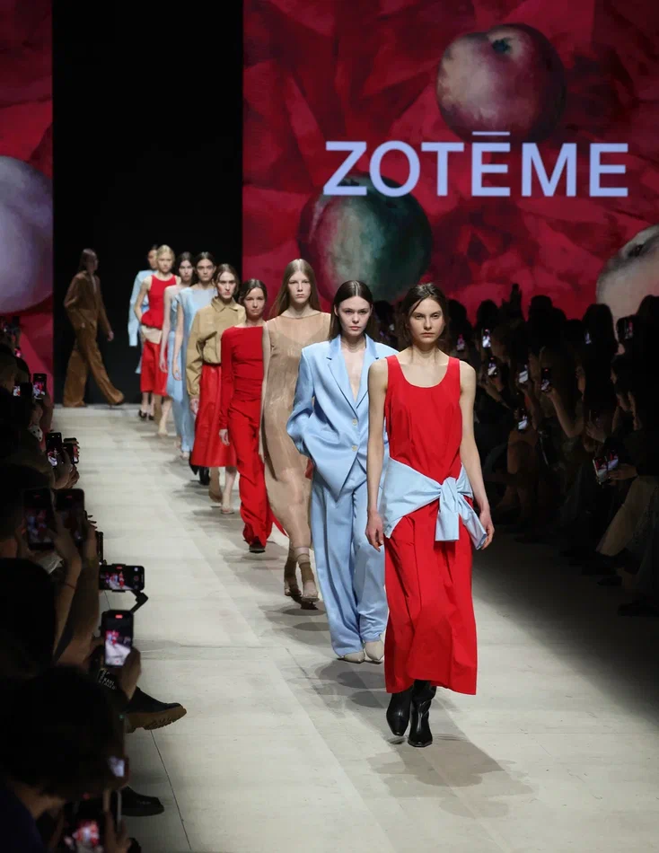 Столичный бренд Zotēme презентовал коллекцию, построенную на контрасте цвета и глубоких культурных отсылках. В линейке, вдохновленной творчеством Кузьмы Петрова-Водкина, яркими акцентами стали корсеты, костюмы, юбки и платья с летящим подолом. Центральным элементом стал образ женщины в искусстве художника. Этот образ в виде принта сияет на одном из платьев линейки. Особое внимание в коллекции уделено принтам, созданным непосредственно на основе живописных произведений Петрова-Водкина.