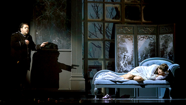 На три недели Татарский академический государственный театр оперы и балета им. М. Джалиля стал центром притяжения для поклонников оперного искусства. Старейший из ныне существующих в России оперных форумов — Международный оперный фестиваль имени Федора Шаляпина — отметил свое 35-летие премьерой «Пиковой дамы» Чайковского в постановке народного артиста России Юрия Александрова. За дирижерский пульт встал маэстро Марко Боэми (Италия). — Главным персонажем у нас стала графиня, «пиковая дама», — уточнил режиссер Юрий Александров. — Она олицетворяет темные силы, зреющие в душе Германа. Сценография в прочтении Виктора Герасименко решена одновременно и классически, и «модерново». Художник активно заполняет пространство сцены декорациями и видеоинсталляцией. Перед зрителями появляются бальная зала с гобеленами и картинами старых мастеров, мраморные стены дворца, набережная Невы и парк с оголенными деревьями. — Сценическое оформление поделено на три истории: «Петербург», «Сны» и «Карточная игра», — рассказал художник. — Задача — воссоздать атмосферу города на Неве во всей ее двойственности, передать противоречие возвышенной красоты и гибельной мрачности. Сумрака спектаклю добавляет графиня, которую вывозит на троне ее свита. Старуха осьмидесяти лет, как писал Пушкин, по задумке режиссера предстанет перед Германом в образе прекрасной дамы, словно сошедшей с портрета в ее доме... На фестивале «Пиковую даму» дали дважды. Партию Графини исполнили солистка Большого театра Татьяна Ерастова и солистка театра «Новая Опера» Александра Саульская-Шулятьева. В роли Германа выступили Сергей Поляков («Новая Опера») и Николай Ерохин из Московского музыкального театра имени Станиславского и Немировича-Данченко. Приглашать звезд стало для казанцев традицией. 35 лет назад Рауфаль Мухаметзянов, только пришедший руководить Театром оперы и балета, решил проблему полупустых залов, придумав оперный фестиваль. В 1982 году провели первый. С тех пор на фестивальную сцену выходили Ирина Архипова, Валерий Гергиев, Елена Образцова, Владимир Васильев, Артур Эйзен, Владислав Пьявко, Владимир Маторин, Любовь Казарновская, Мария Биешу и Альбина Шагимурова. — Основу фестивальной афиши составляют собственные постановки нашего театра, но все главные партии в спектаклях исполняются приглашенными солистами — ведущими оперными певцами России и мира, — рассказал Рауфаль Мухаметзянов. — Эта модель фестиваля работает по сей день и удерживает интерес зрителей. Стратегически верный ход руководства театра сработал. В оперу стал ходить зритель. Теперь, чтобы попасть на спектакли, надо успеть приобрести билеты в первые дни продажи. Самый дорогой — на премьеру «Пиковой дамы» — стоил 3 тыс. рублей. В театре всегда аншлаги. Переступив порог, зрители сразу получают эстетическое удовольствие. Красный бархат, золото, лепнина, хрустальные люстры, наборный паркет — серьезные вложения в искусство. Но одним ремонтом публику не удержишь. Нужны хорошие спектакли, и они есть. — В афише театра представлены шедевры русской и западноевропейской классики, а также лучшие образцы национального репертуара, — продолжает директор. — Здесь органично существуют спектакли в стиле «большой оперы» и авторские постановки. Как говорит Мухаметзянов, татарский театр работает по си
