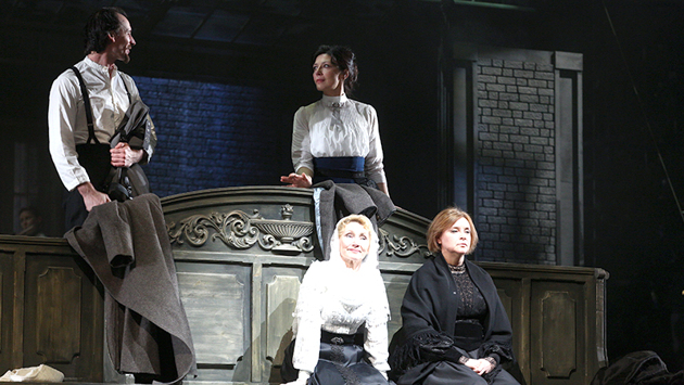 В новом спектакле БДТ «Три сестры» Владимира Панкова женских персонажей играют одновременно два состава — более молодой и возрастной. Режиссер, исследуя проблему Времени в жизни человеческой, соединил в одном пространстве разные ее фазы. На сцене — сестры, вполне соответствующие тому, «как написано»: сдержанная, исполненная достоинства Ольга Татьяны Аптикеевой, «обложечная» красавица Маша Полины Толстун, ломкая, несколько инфантильная Ирина Алены Кучковой. И эти же героини спустя десятилетия. Высохшая, порой напоминающая гарпию, при этом исполненная стойкости Ольга (Елена Попова), Маша (Мария Лаврова), укрывшая былую любовную истому религиозной обрядностью. Наконец, Ирина (Людмила Сапожникова), которая играла эту роль еще в знаменитом спектакле Георгия Товстоногова, поставленном в 1960-х. Молодой состав вызывает вопросы: модельная красота Толстун не всегда преодолевается душевным порывом, на «характерной» Кучковой не вполне «сидит платьице» инженю. Зато от постаревших героинь не оторвать глаз: такой внутренний драматизм, что молчание красноречивей монологов. И Ирина-старшая, несмотря на возраст, более подходит к амплуа «инженю-лирик», чем ее alter ego: и лиричность, и прозрачность души более очевидны. Мужской состав уступает женскому. Непонятно, какие достоинства привлекли Машу в Вершинине: игра Андрея Аршинникова пока сводится к обозначению героя-любовника в военной форме. На фоне острой и выразительной Натальи Ивановны (Елена Ярема) затерялся невнятный Андрей (Антон Шварц). Разве что образ Тузенбаха (Виктор Княжев) получился живым, данным в развитии. Может показаться, что спектакль из разряда «актерских», но это отнюдь не так. Работы артистов вписаны в сложно устроенную, «формалистскую» сценическую ткань. Новый руководитель «Центра драматургии и режиссуры» Владимир Панков больше известен как основатель коллектива SounDrama, экспериментирующего на пересечении театра и музыки. Неудивительно, что своих коллег он тоже привлек и к этой постановке. Сценограф Максим Обрезков, художник по свету Николай Сурков, композиторы Артем Ким и Сергей Родюков, хореограф Екатерина Кислова — все они саундрамовцы, соратники режиссера, обеспечившие действу высокий постановочный уровень. Сценограф создал единую на все четыре действия декорационную среду — кирпичные стены напоминают о павильоне старого доброго театра. С течением времени пространство преображается. Сначала оно кажется интерьером особняка: скамья с массивной резной спинкой, стол с самоваром, старинные часы. Позже, когда стеклянный потолок излучает мощный свет, разрезающий дымовую завесу, и загораются свечи, это уже не дом, а храм. А ближе к финалу все выразительные средства работают на другой образ: получается, говоря строками Пастернака, «вокзал, несгораемый ящик / Разлук моих, встреч и разлук…». Непременный атрибут действия — музыка. Оркестранты БДТ одеты в костюмы чеховской эпохи и играют то в оркестровой яме, видимые глазу, то на дальнем плане, встроенные в затейливый мизансценический рисунок — с двоящимися и троящимися персонажами, безымянными «хористами». Соединяя в одном пространстве разные времена, Панков подчеркивает, что сам процесс воспоминания, лирическая обращенность в прошлое куда важней событийной канвы. В россыпи сцен, бесконечно наплывающих друг на друга,