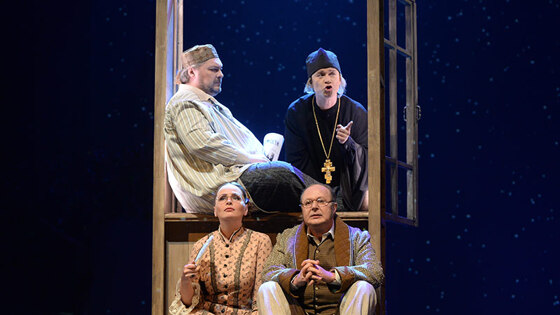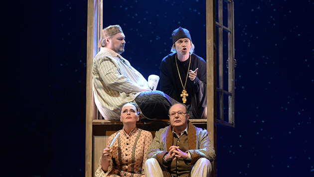 В Театре имени Ермоловой появился «Чайковский», спектакль режиссера Александра Созонова. Великий композитор впервые в отечественной истории стал героем драматической сцены, и дебют, увы, нельзя назвать удачным. В других видах искусства биографию русского гения рассказывали и раньше. В Санкт-Петербургском театре балета Бориса Эйфмана с успехом идет спектакль «Чайковский. Pro et Contra». В 1970-х режиссер Игорь Таланкин снял фильм «Чайковский» с Иннокентием Смоктуновским в заглавной роли. У премьеры Театра имени Ермолова тоже кинематографические корни. В основу постановки положен киносценарий выдающегося драматурга и сценариста Юрия Арабова. В основе его реальный факт из жизни Петра Ильича: летом 1877 года он приехал погостить в Каменку, украинское имение своей сестры Александры Ильиничны Давыдовой. Прибыл в расстроенных чувствах — в Москве в Большом театре ошикали премьеру «Лебединого озера». Душевные муки композитора, с демонстрации которых начинается действие, переданы с учетом балетной специфики. Звучит электронная музыка Ивана Кушнира, перепевающая лейтинтонацию вступления к балету. С колосников медленно спускается цирковой тросик, в его петле, как гимнаст в воздухе, совершает различные телодвижения маэстро. Судя по преобладанию судорожных па, его душевное состояние на грани срыва, и даже благодатная южная ночь — видеопроекция щедро рассыпает по залу мерцающие звезды — ему не в радость. Однако достигнув горизонтальной поверхности, композитор оказывается вполне вменяемым — молод, хорош собой и, невзирая на бремя исключительности, способен после некоторой заминки душевно приветствовать вышедших навстречу домочадцев. В этой компании что не тип, то находка. Становой пристав (Сергей Бадичкин), не расстающийся с виолончелью, делится с Петром Ильичем мыслями о музыке. Настоятель храма (Никита Татаренков) — соображениями о вечном. Очаровательные племянники, желая сделать дяде приятное, танцуют «Лебединое озеро». Имеется также хлопотунья сестрица, заботящаяся о самочувствии «Петеньки» (Мария Бортник), припертый ее каблучком застенчивый муж (Юрий Казаков), вальяжный деверь (Владимир Мурашов), забывчивая сестрина свекровь (Алесандра Назарова), навязчивая супруга композитора (Анна Воркуева), сообразительный слуга Алексей (Алексей Каничев), снабжающий маэстро житейскими советами... Шум, гам, суета и в центре этого бедлама горячо всеми любимый Петр Ильич. И никуда-то ему не скрыться от милейших и нелепейших почитателей. Приходится вызывать на помощь призрак Моцарта, дабы совместными усилиями выяснить, как существовать гению под гнетом обывательской среды. Режиссер Алексей Созонов определил жанр спектакля как трагикомедию и предупредил в аннотации, что постановка — «не байопик, где скрупулезно соблюдены исторические точности, а сон: провидческий, сказочный и немного страшный. Это сон Юрия Арабова о Чайковском, это сон композитора Чайковского обо всех нас». Мы в представлении гения — существа неприглядные. Но и Чайковский в нашем — тоже не герой. Волей режиссера хороший актер Сергей Кемпо проживает всего два состояния: то выглядит упругим бодрячком, то мгновенно сдувается, как лопнувший шар, и начинает бормотать что-то неразборчивое. Трагедии здесь не чувствуется, но комедия положений, местами смешная, присутствует: бедный